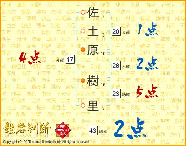 佐(7画)土(3画)原(10画) 樹(16画)里(7画)