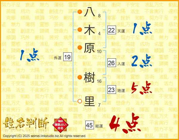 八(8画)木(4画)原(10画) 樹(16画)里(7画)