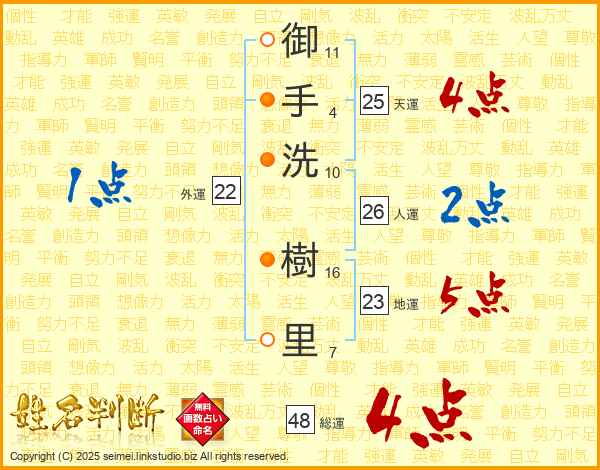御手洗樹里さんの天運は25画の4点!