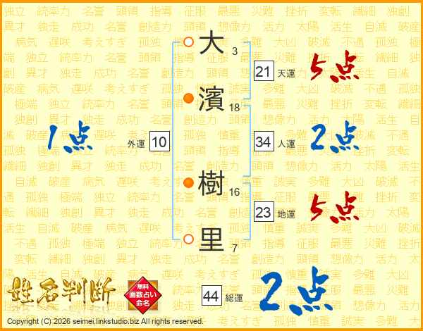大(3画)濱(18画) 樹(16画)里(7画)