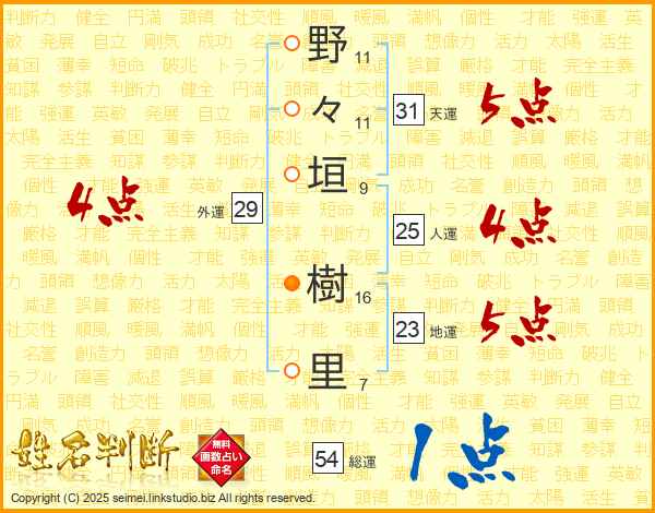 野々垣樹里さんの人運は25画の4点!