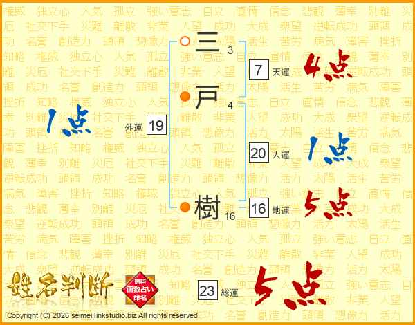 三戸樹さんの総運は23画の5点!
