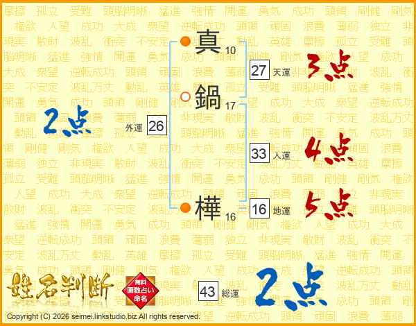 真鍋樺さんの人運は33画の4点!
