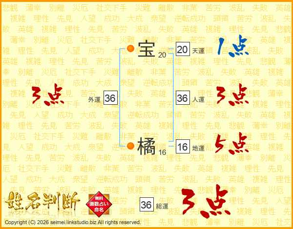 宝橘さんの外運は36画の3点!