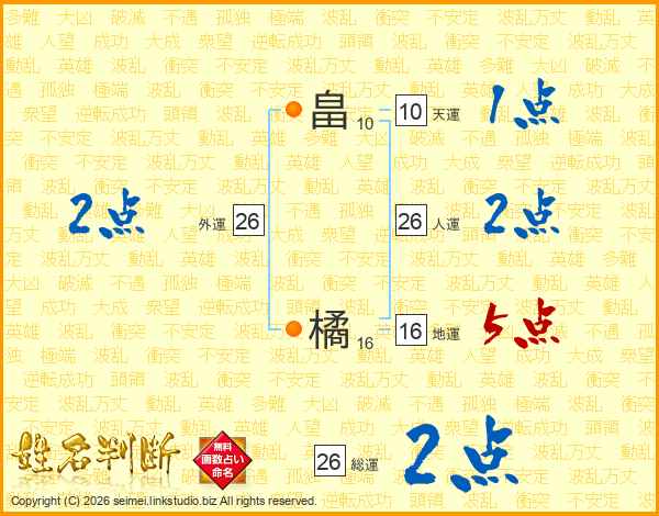 畠橘さんの人運は26画の2点!