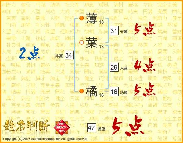 薄葉橘さんの総運は47画の5点!