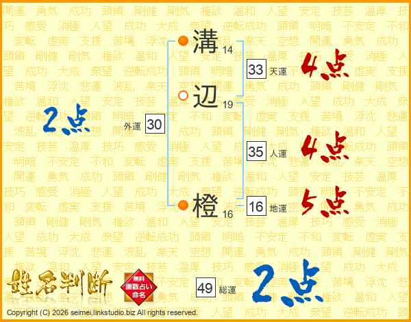 溝辺橙さんの天運は33画の4点!