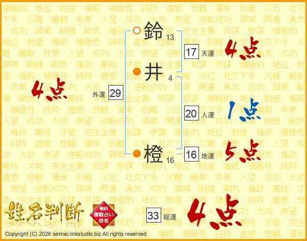 鈴井橙さんの総運は33画の4点!