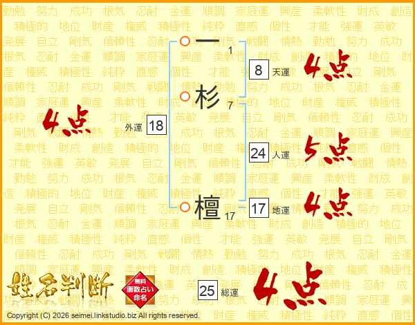 一杉檀さんの総運は25画の4点!