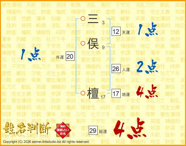 三俣檀さんの人運は26画の2点!