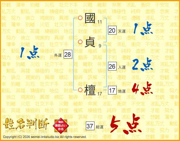 國貞檀さんの総運は37画の5点!