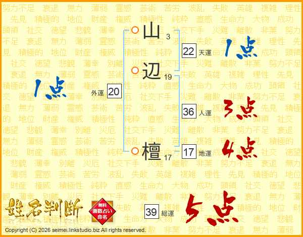 山辺檀さんの総運は39画の5点!