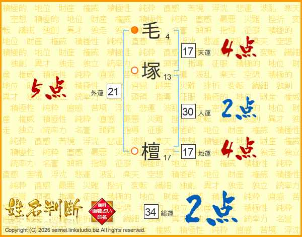 毛塚檀さんの天運は17画の4点!