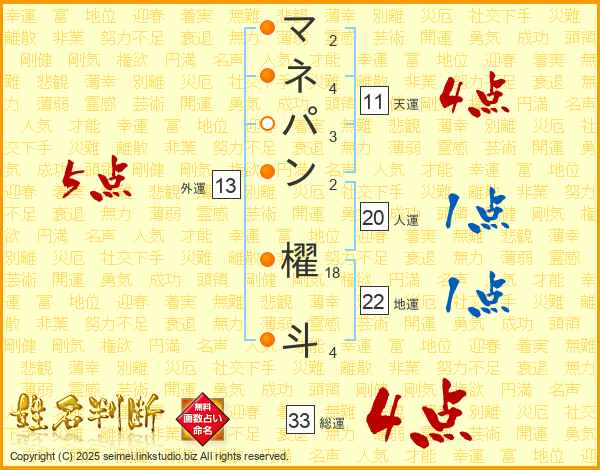 マネパン櫂斗さんの総運は33画の4点!