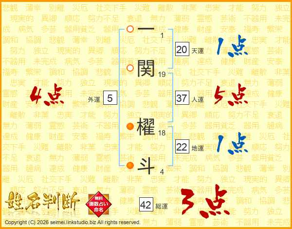 一(1画)関(19画) 櫂(18画)斗(4画)