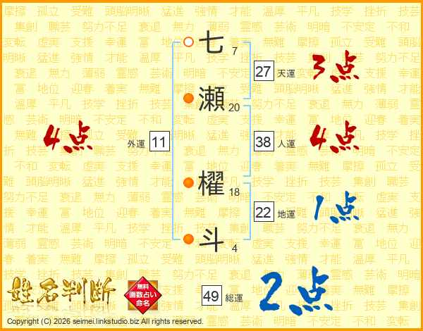 七瀬櫂斗さんの外運は11画の4点!