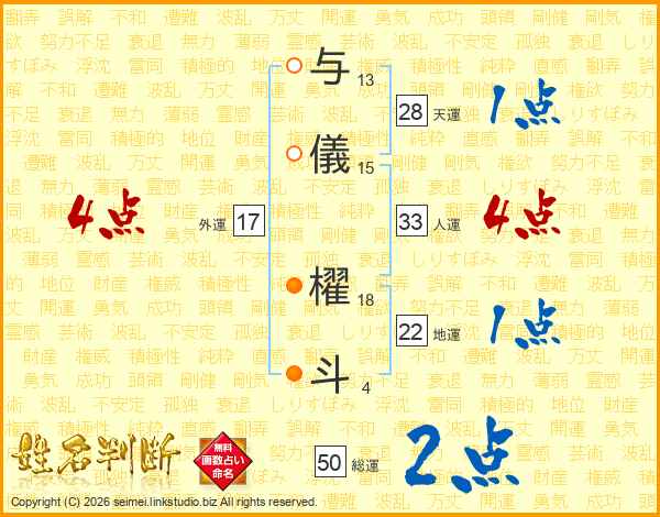 与(13画)儀(15画) 櫂(18画)斗(4画)