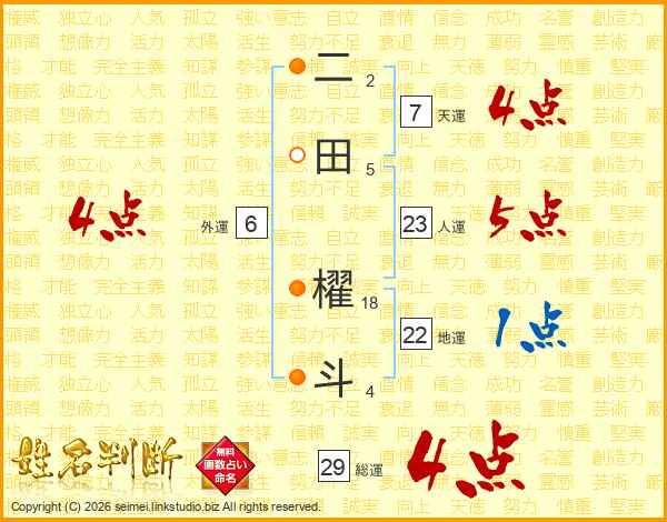 二(2画)田(5画) 櫂(18画)斗(4画)