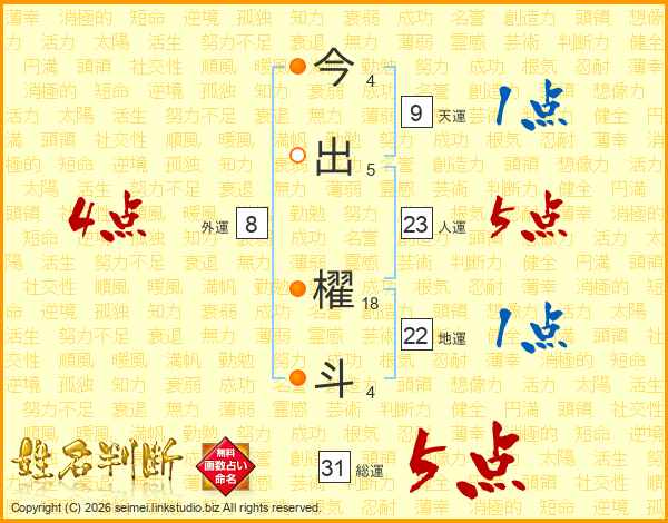 今(4画)出(5画) 櫂(18画)斗(4画)