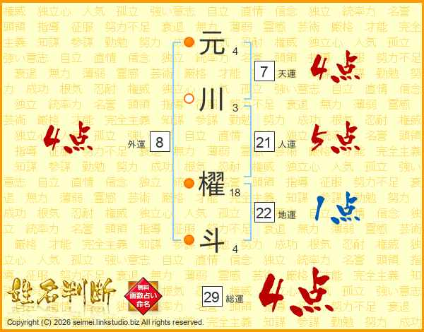 元川櫂斗さんの総運は29画の4点!
