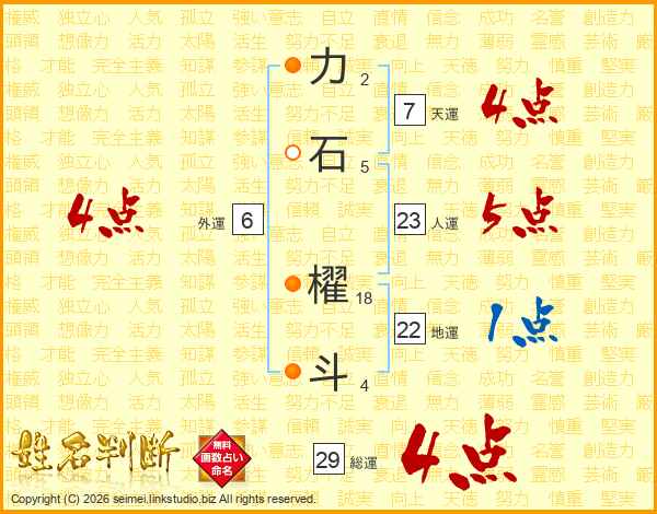 力石櫂斗さんの総運は29画の4点!