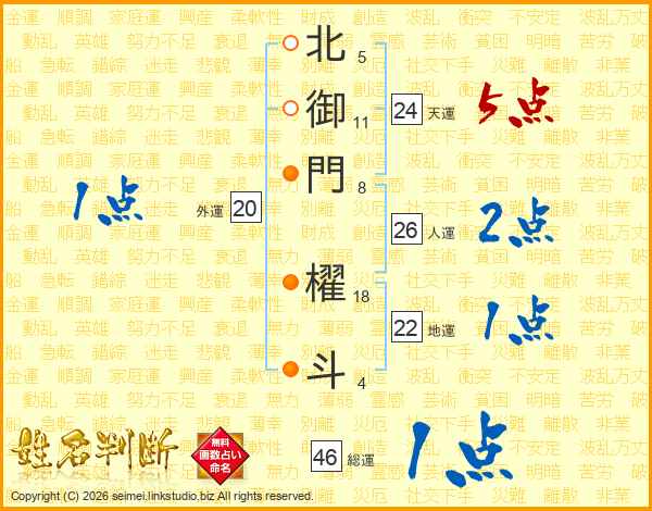 北御門櫂斗さんの人運は26画の2点!