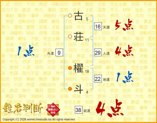 古荘櫂斗さんの総運は38画の4点!