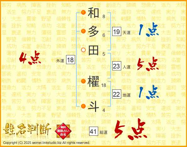 和(8画)多(6画)田(5画) 櫂(18画)斗(4画)