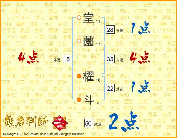 堂(11画)薗(17画) 櫂(18画)斗(4画)