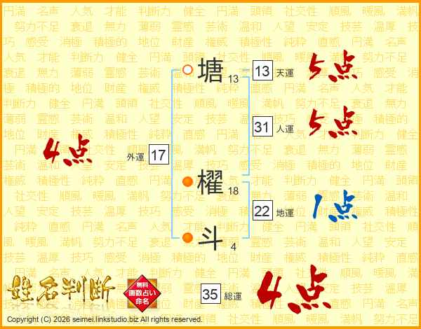 塘櫂斗さんの外運は17画の4点!