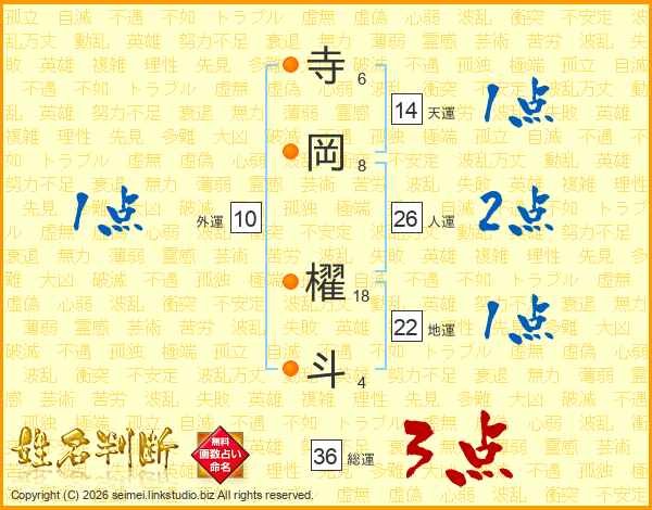 寺(6画)岡(8画) 櫂(18画)斗(4画)