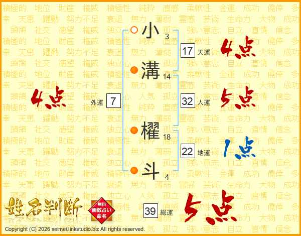 小溝櫂斗さんの天運は17画の4点!