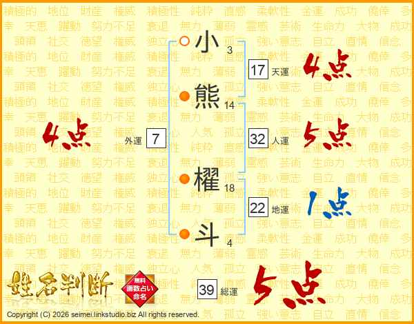 小熊櫂斗さんの総運は39画の5点!