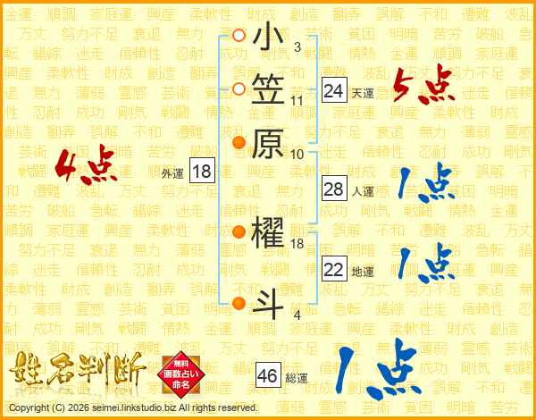 小笠原櫂斗さんの総運は46画の1点!
