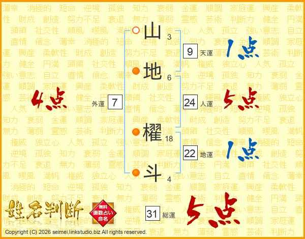 山地櫂斗さんの総運は31画の5点!