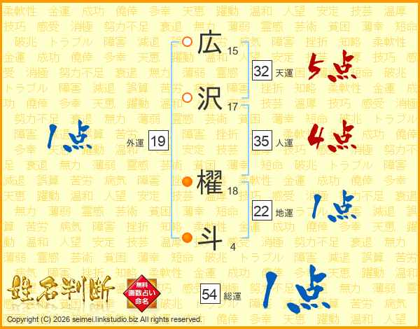 広沢櫂斗さんの総運は54画の1点!