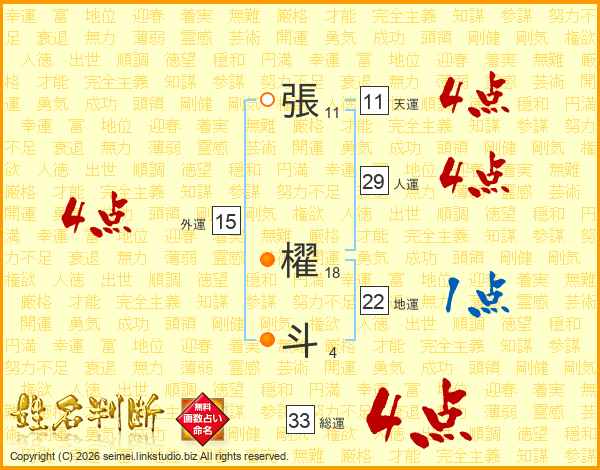 張櫂斗さんの総運は33画の4点!