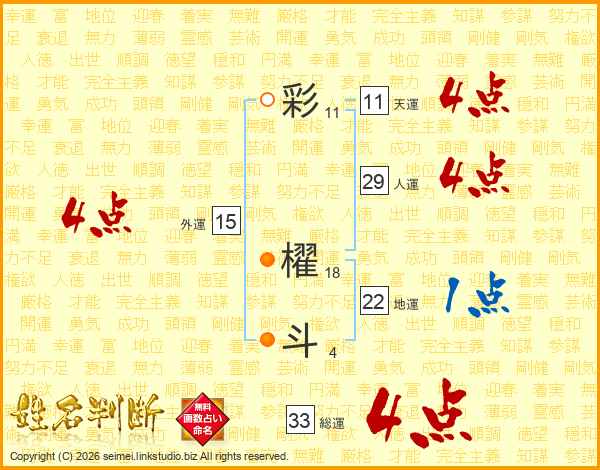 彩櫂斗さんの外運は15画の4点!