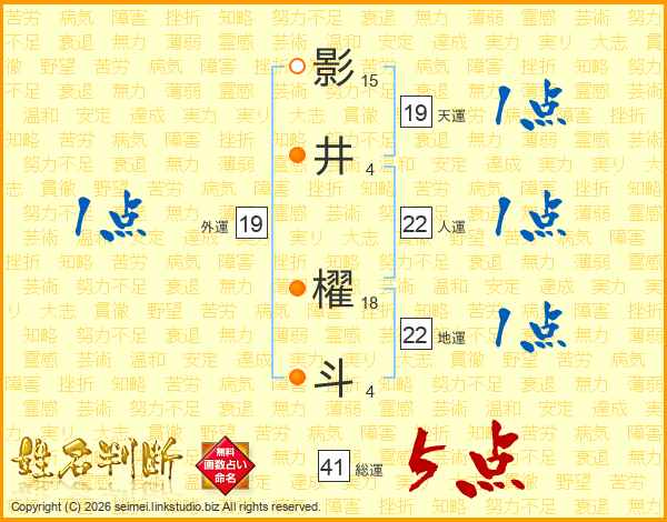 影(15画)井(4画) 櫂(18画)斗(4画)