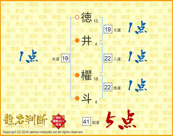 徳井櫂斗さんの総運は41画の5点!