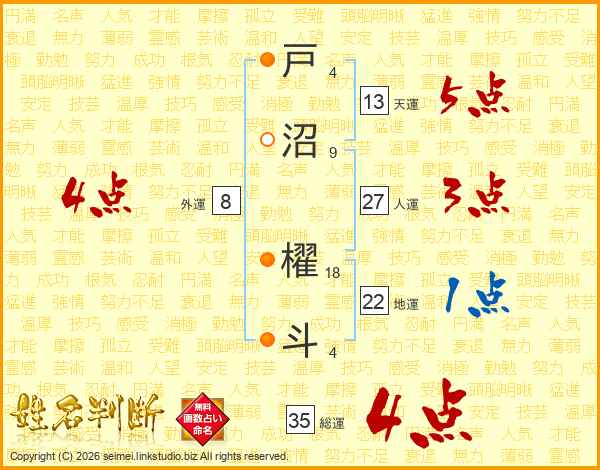 戸沼櫂斗さんの天運は13画の5点!