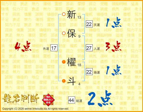 新保櫂斗さんの外運は17画の4点!