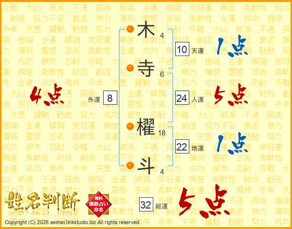 木寺櫂斗さんの総運は32画の5点!