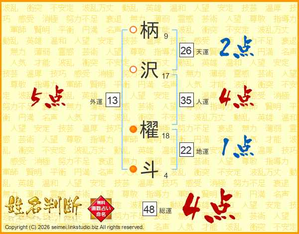 柄沢櫂斗さんの天運は26画の2点!