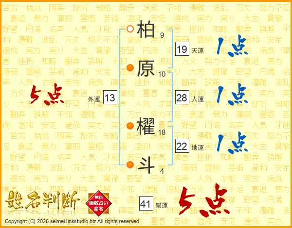 柏(9画)原(10画) 櫂(18画)斗(4画)