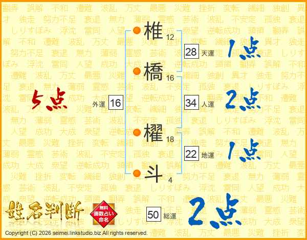 椎橋櫂斗さんの総運は50画の2点!