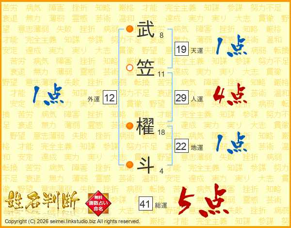 武(8画)笠(11画) 櫂(18画)斗(4画)