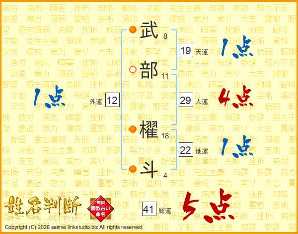 武(8画)部(11画) 櫂(18画)斗(4画)