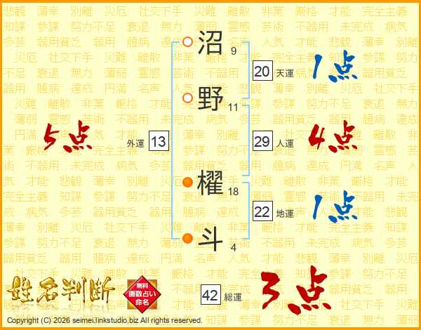沼野櫂斗さんの総運は42画の3点!