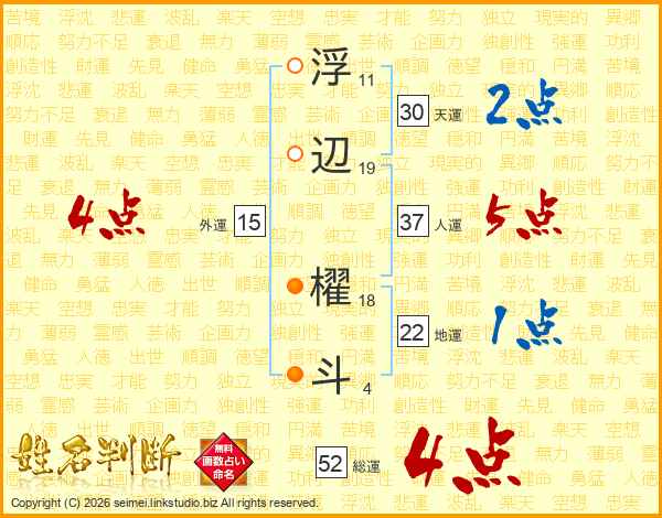 浮辺櫂斗さんの総運は52画の4点!